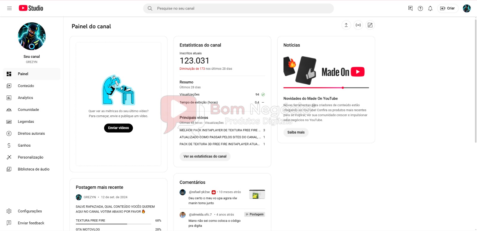 -CANAL DO YOUTUBE DE 123K NÃO MONETIZADO-(COD-388)
