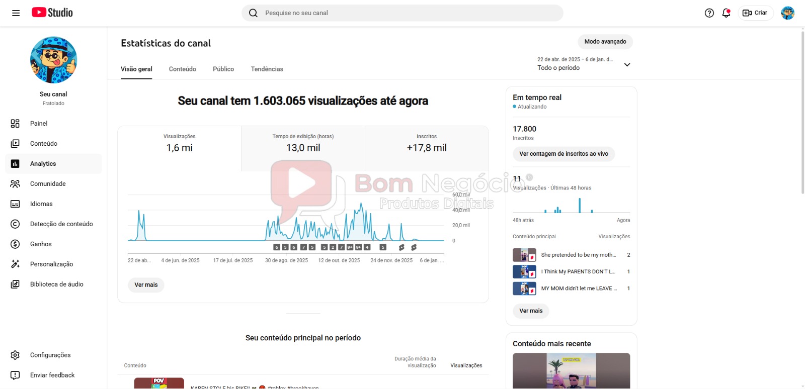 CANAL DO YOUTUBE DE 17K NÃO MONETIZADO – ENTRETENIMENTO (COD-451)