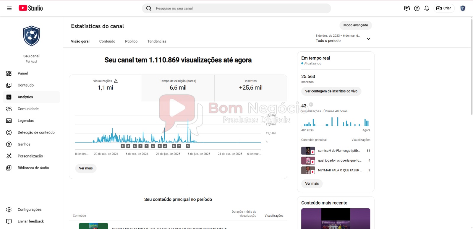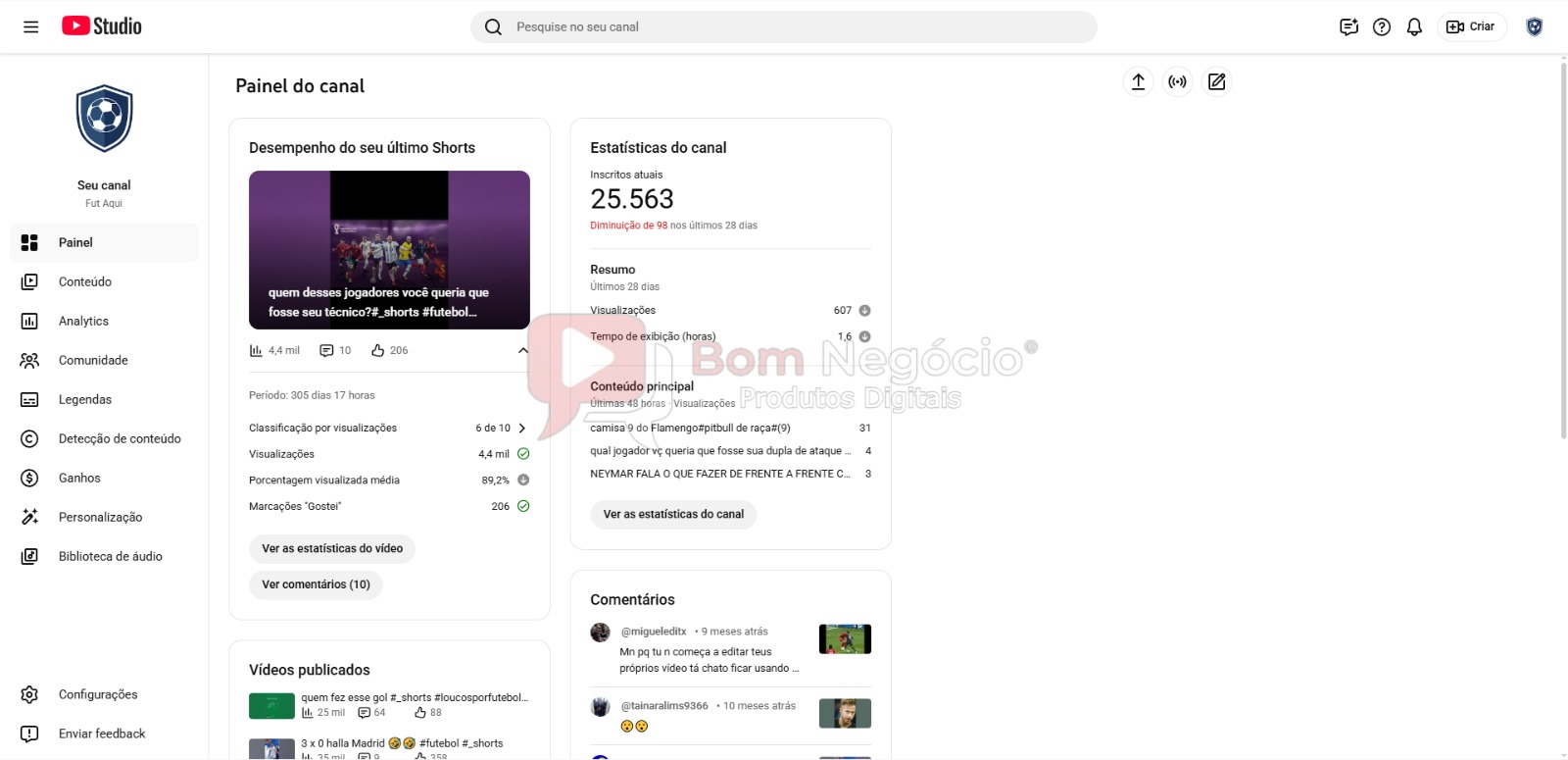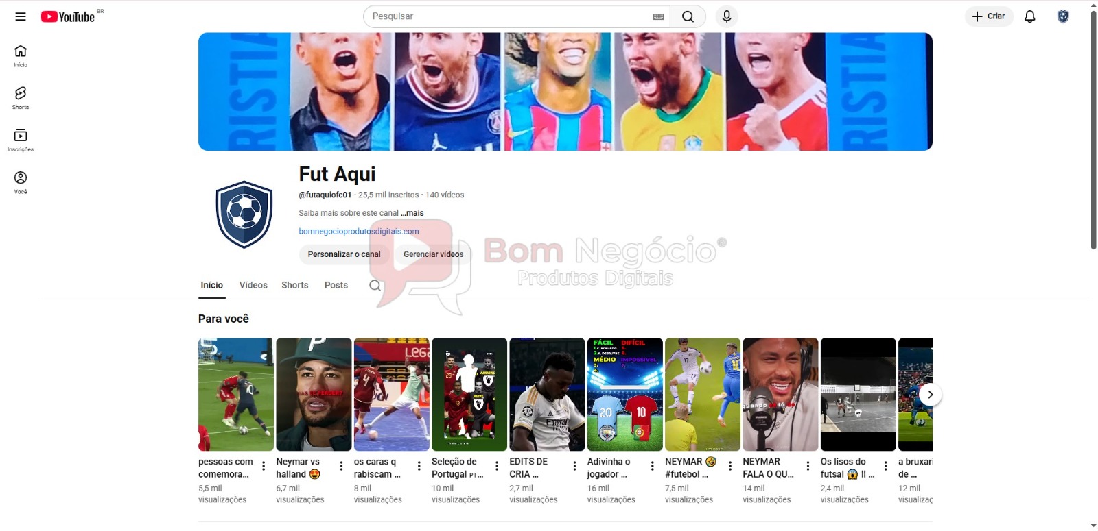 CANAL DO YOUTUBE DE 25K NÃO MONETIZADO – FUTEBOL (COD-514)