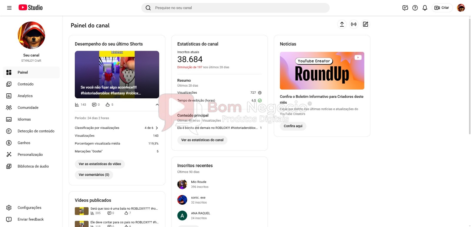 -CANAL DO YOUTUBE DE 38K NÃO MONETIZADO A VENDA-(COD-555)