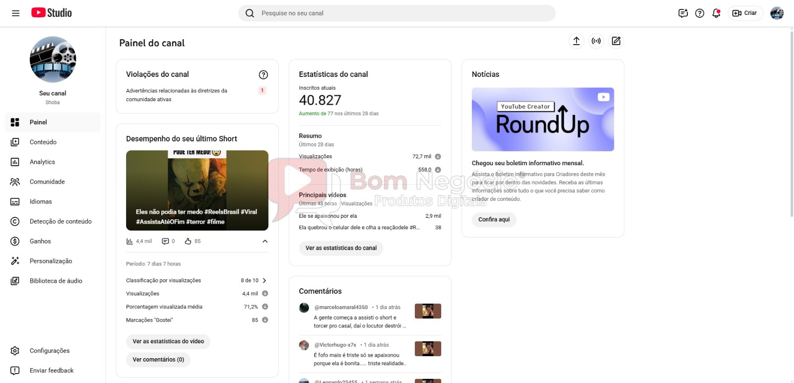-CANAL DO YOUTUBE DE 40K NÃO MONETIZADO-(COD-450)