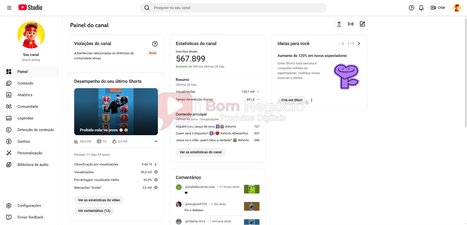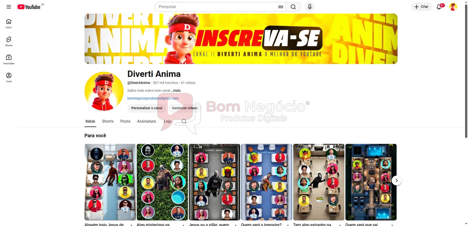 -CANAL DO YOUTUBE DE 560K NÃO MONETIZADO A VENDA-(COD-529)