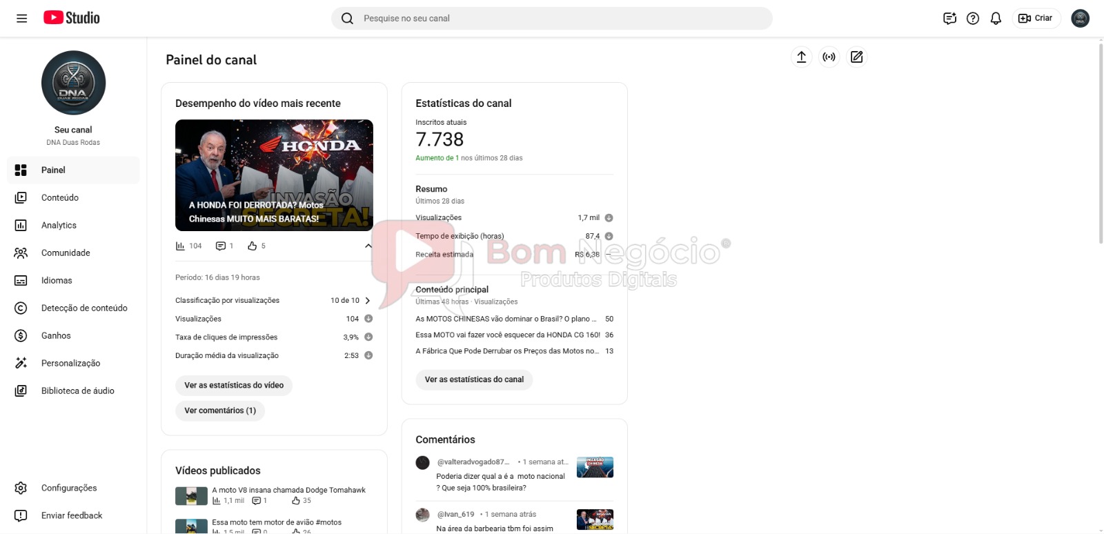 -CANAL DO YOUTUBE DE 7K MONETIZADO A VENDA-(COD-557)