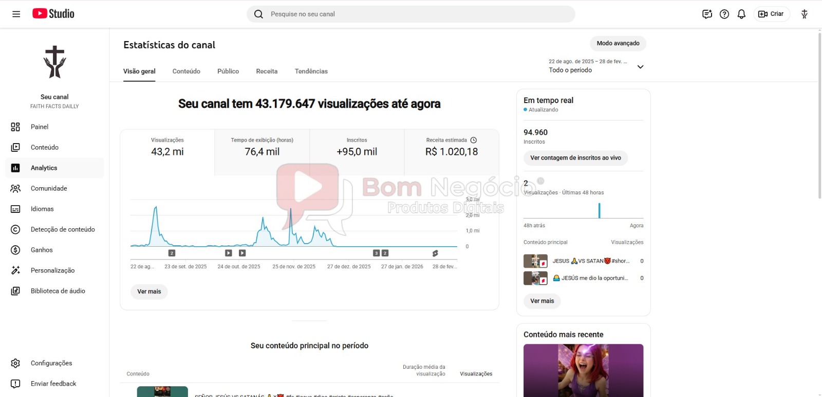 -CANAL DO YOUTUBE DE 94K NÃO MONETIZADO A VENDA-(COD-504)