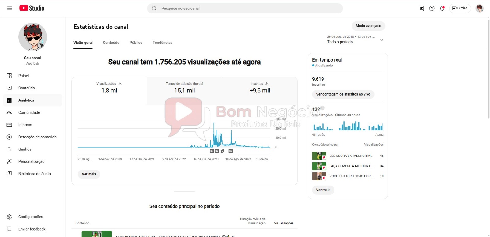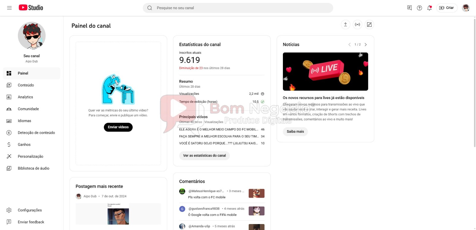 -CANAL DO YOUTUBE DE 9K NÃO MONETIZADO-(COD-417)